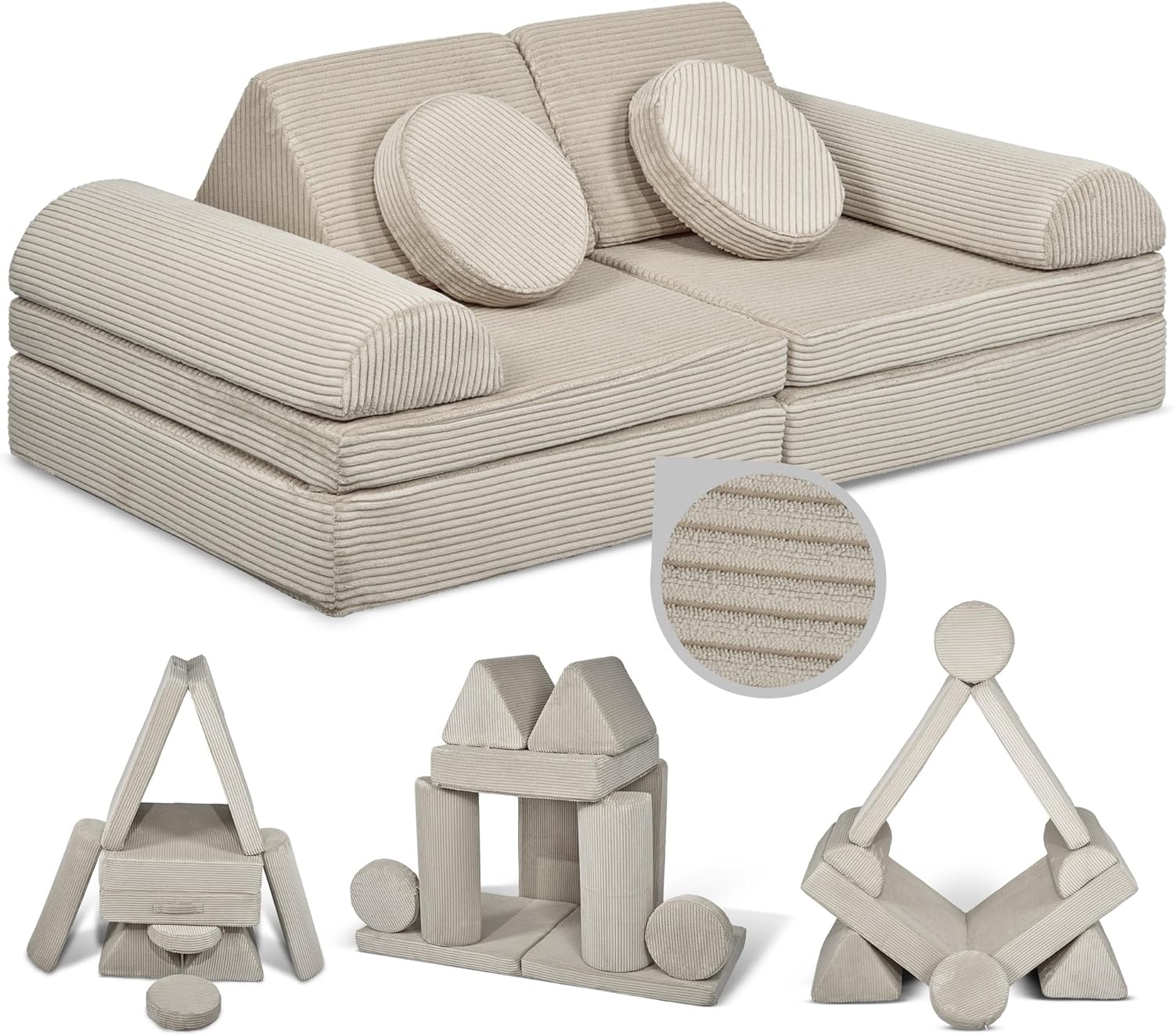 Linodino Kindersofa Spielsofa I Schaumstoff Stapelsteine für Kinder I Kindercouch 3 Jahre Garantie