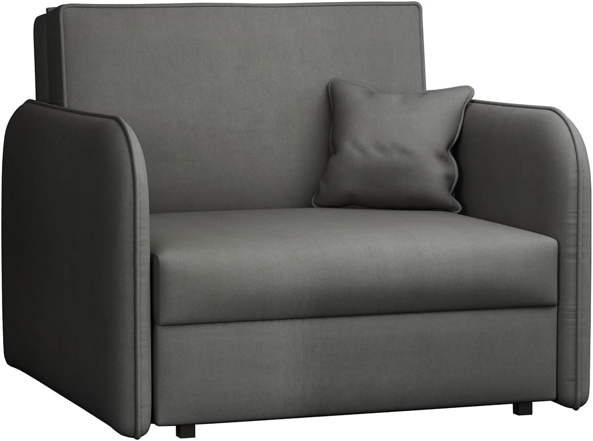 Schlafsofa Viva Loft I in der Farbe Mono 246 vereint Funktionalität und modernes Design. Mit einer Länge von 95 cm, einer Breite von 98 cm und einer Höhe von 85 cm bietet es eine komfortable Schlaffläche von 196 x 80 cm. Die Holzkonstruktion aus Kiefernholz und Spanplatte sorgt für Stabilität. Das Sofa ist ausziehbar, verfügt über einen praktischen Bettkasten und ist mit silbernen Metallfüßen ausgestattet. **Highlights** - Ausziehbar für zusätzlichen Schlafkomfort - Praktischer Bettkasten für Stauraum - Freistehendes Sofa mit überzogenem Rücken - Kissen im Preis enthalten - Polsterlehnen fest montiert **Produkteigenschaften** - Maße (LxBxH): 95 x 98 x 85 cm - Schlaffläche: 196 x 80 cm - Bettkasten Maße (LxBxH): 77 x 66 x 19 cm - Material: Holzkonstruktion (Kiefernholz) + Spanplatte - Sitzfläche: Schaumstoff T25/42 + Wellenfeder - Lehne: Schaumstoff T25/42 - Silberne Metallfüße **Lieferumfang** - Schlafsofa Viva Loft I - Kissen (ohne Reißverschluss) - Lieferung in die Wohnung - Montage durch den Kunden erforderlich - Ohne Dekoration