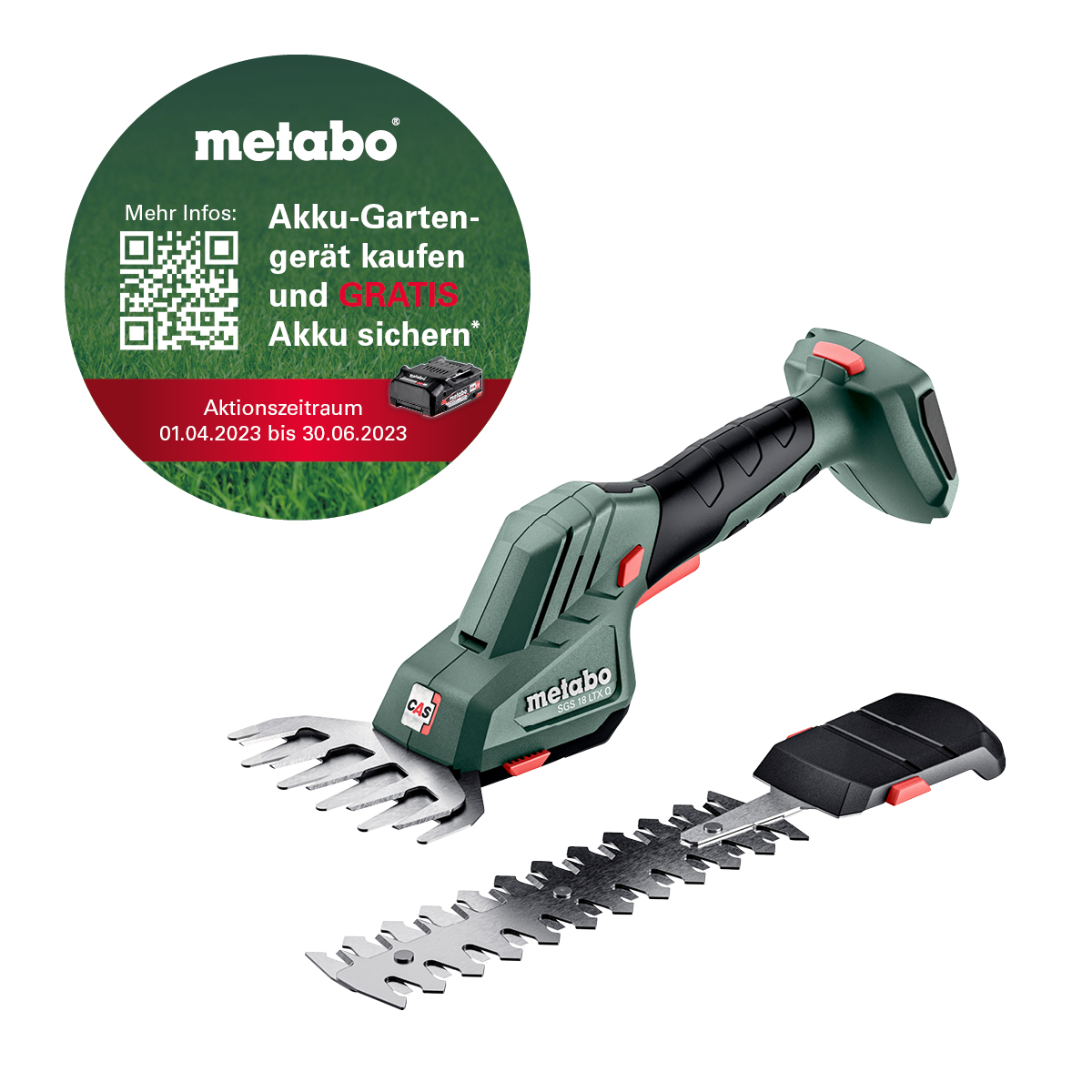 X-Mas Deal in Elektrische GartenscherenMetabo Akku-Strauch- und Grasschere SGS 18 LTX Q (18V, Li-Ion, inkl. 20cm Strauch- und 11,5cm Grasmesser) ohne Akku und Ladegerät, im Karton