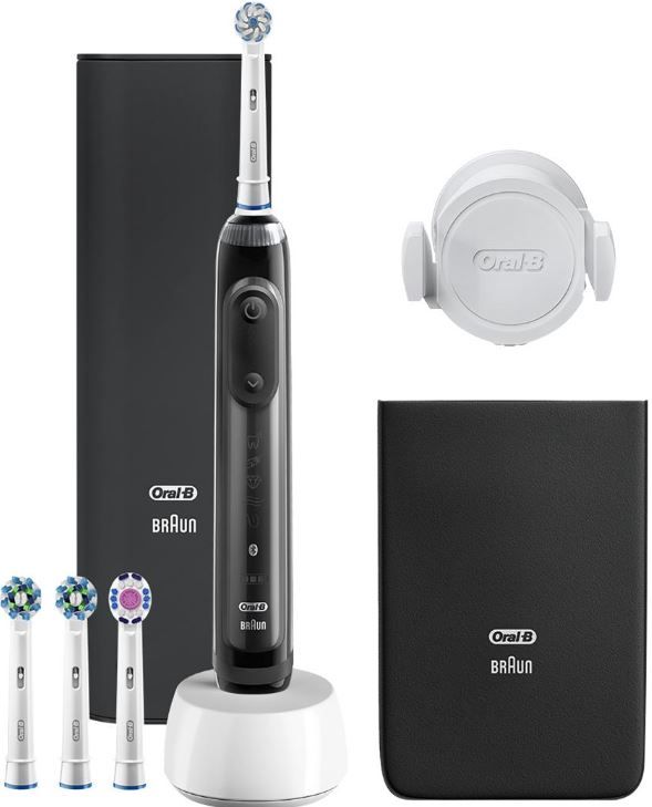 1 Handstück, 2 Bürstenköpfe, 1 Reiseetui, 1 Ladeglas