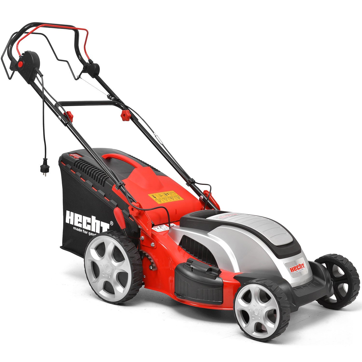 - Der HECHT 1803 S Elektro-Rasenmäher verfügt über eine leistungsstarke 5-in-1 Funktion, die Mähen, Fangen, Mulchen, Seitenauswurf und Zerkleinern von Laub und Ästen ermöglicht.