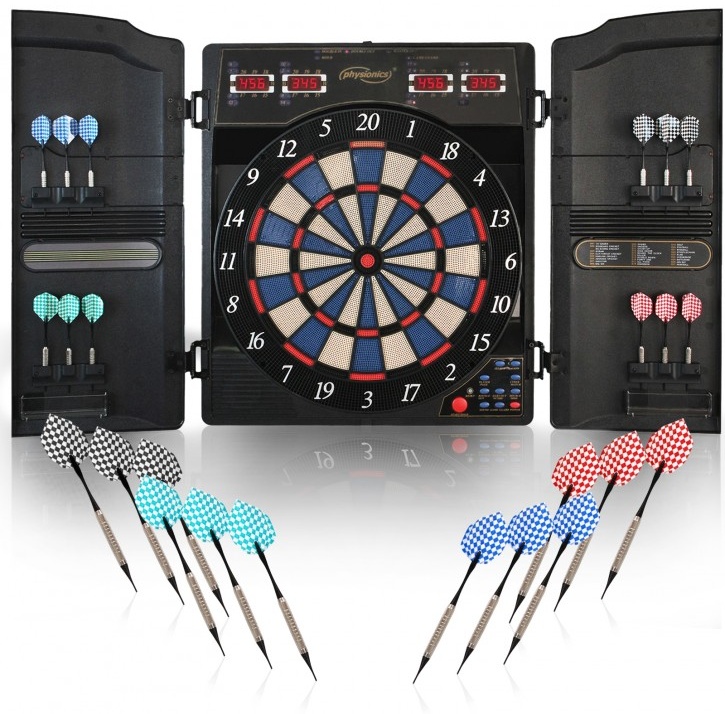 in Elektronische DartscheibenPhysionics 'Elektronische Dartscheibe mit Türen'27 Spiele, 159 Spielvarianten, inkl. 12 Dartpfeile, 100 Ersatz-Pfeilspitzen und Netzteil, 16 Spieler, LED Anzeige Dartboard, Dartautomat, Dartspiel, Darts