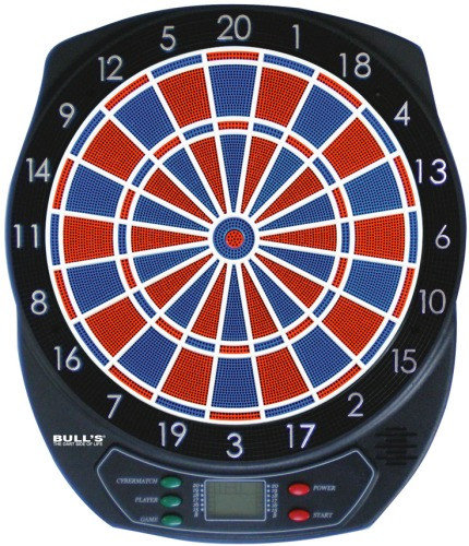 Das Bull's Scorpy Dartboard mit LCD Display bietet bis zu 21 Spiele mit 65 Variationen für bis zu 8 Spielern. Das Dartboard wird mit 6 Softdarts und 12 extra Tips geliefert. Details: • elektronische Dartscheibe mit Double und Triple Segmenten • inkl. Netzteil • LCD-Display • inkl. 6 Darts und 12 Ersatzspitzen • für bis zu 8 Spieler • 21 Spiele mit 65 Varianten • Soundeffekt-/Sprachaugabe • Batteriebetrieb möglich (Batterien nicht enthalten) Hinweis: Dartscheibe nur für Soft-Tip Spitzen (Kunststoff). Steel-Tip Spitzen (Stahl) beschädigen die Dartscheibe. Warnhinweise: ACHTUNG: Nicht für Kinder unter 36 Monaten geeignet. Erstickungsgefahr aufgrund verschluckbarer Kleinteile. Nicht für Kinder unter 36 Monaten geeignet. Strangulationsgefahr durch ein langes Seil. Nicht in der Nähe von Hochspannungsleitungen oder bei Gewitter benutzen!