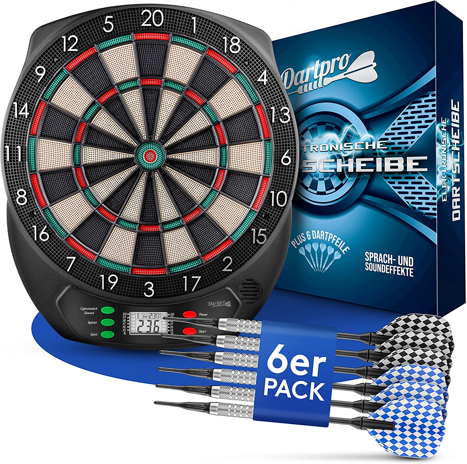 | Name | DartPro Dartscheibe elektronisch - Dartboard mit 6 Darts [kabellos nutzbar] - Innovativer Dartautomat mit 65 Varianten - Dart für 1 bis 8 Spieler |