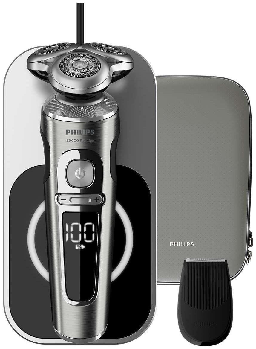 Philips SP9860-16 Elektrischer Nass- und Trockenrasierer Series 9000 Prestige mit Nano-Tech PräzisionsklingenBartstyler, Qi-Ladepad für kabelloses Laden