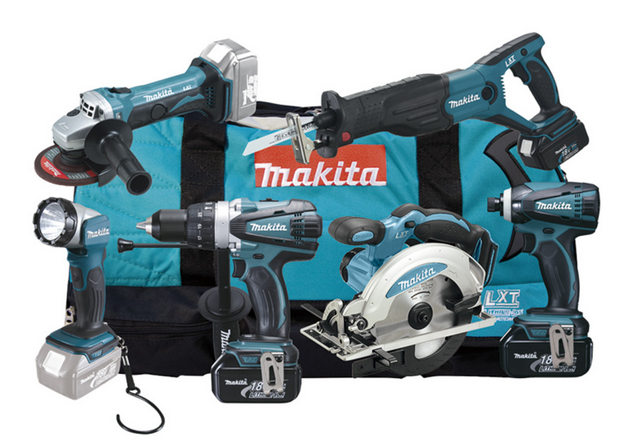 in Elektrowerkzeug-SetsMakita DLX6011 Akku-Maschinen-Set 18V HandkreissägeWinkelschleifer, Reciprosäge, Schlagbohrschrauber, Schlagschrauber, Lampe