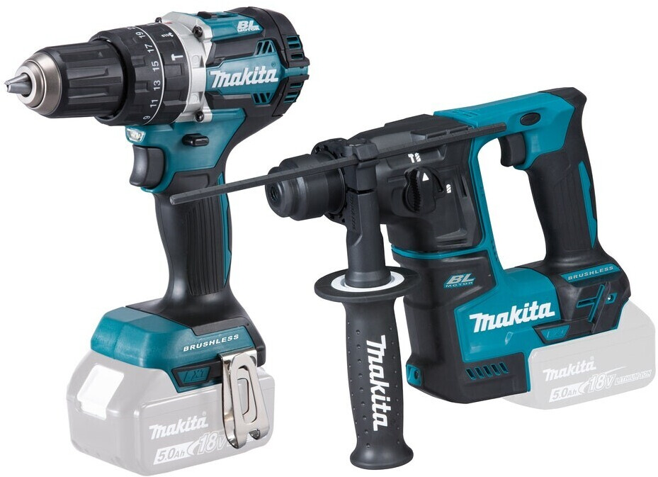 - Das Makita Akku-Kombo-Kit DLX2278 besteht aus dem Akku-Schlagbohrschrauber DHP484Z und dem Akku-Bohrhammer DHR171Z.