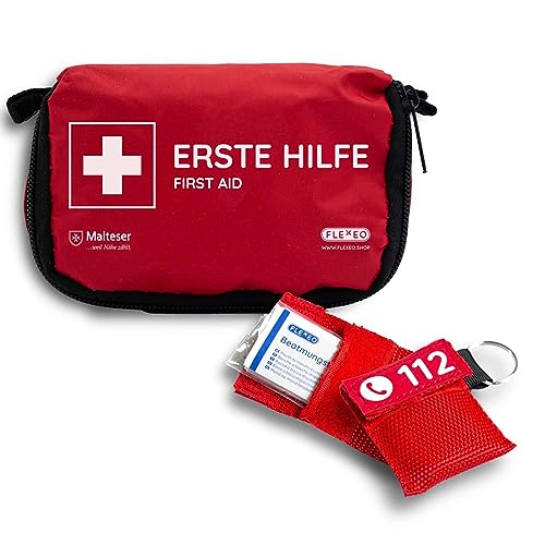 Mini Erste-Hilfe-Set + 2x BeatmungstuchOutdoor, Fahrrad, Wandern, Reise, First Aid Kit, Unterwegs, Kinder, Klein, CPR Maske, Mund zu Mund Beatmungsschutz, Beatmungstuch