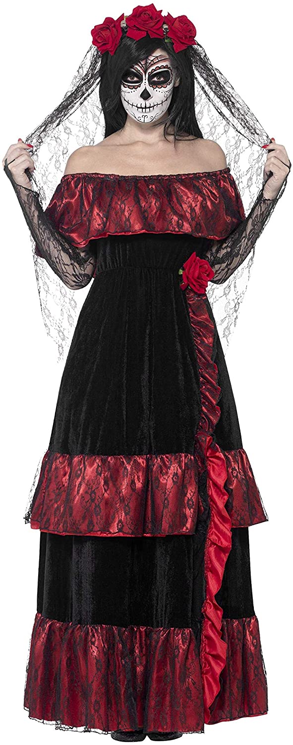 | Name | Halloween! Smiffys Kostüm Tag der Toten Braut, mit Kleid und Rosenschleier |