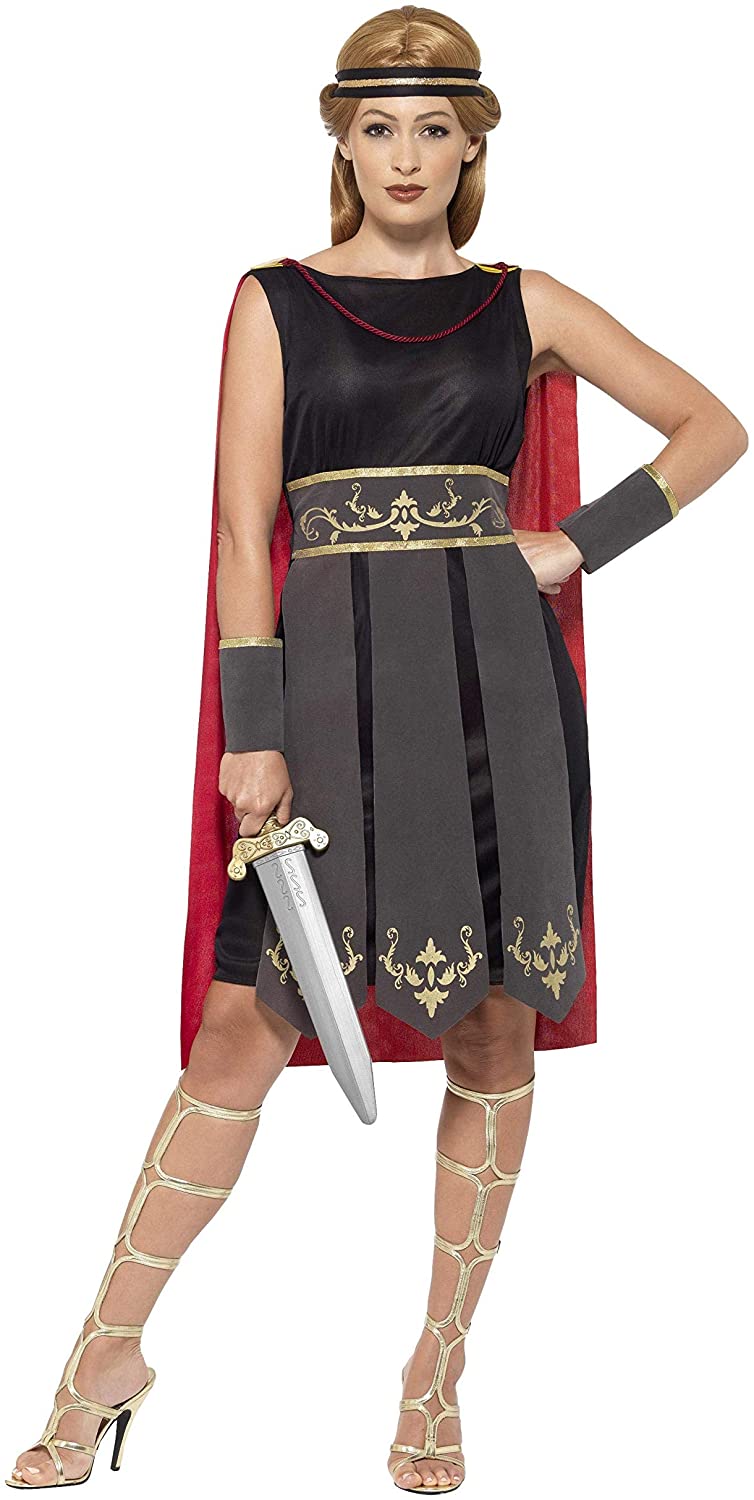 in ErwachsenenkostümeSmiffys 45496M - Damen Römische Kriegerin Kostüm Kleid mit Umhang, Arm Stulpen und Haarband, Größe: 40-42, schwarz