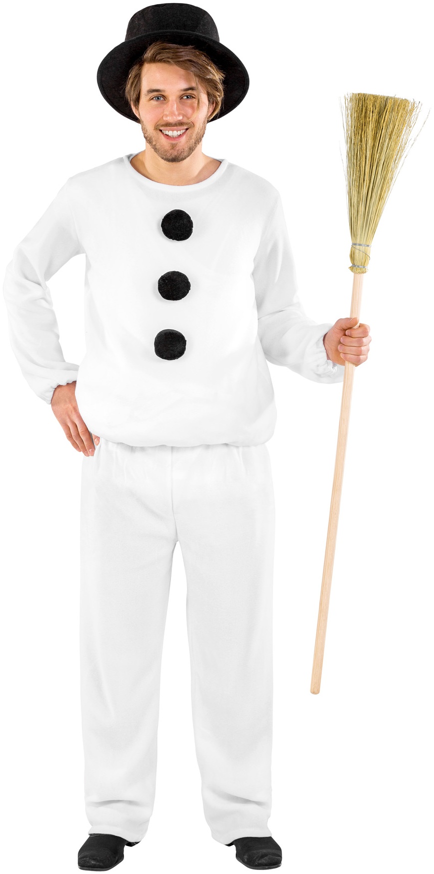 - Das Herrenkostüm Schneemann besteht aus einem Oberteil mit flauschigen Bommel und einer bequemen Hose mit Gummizug