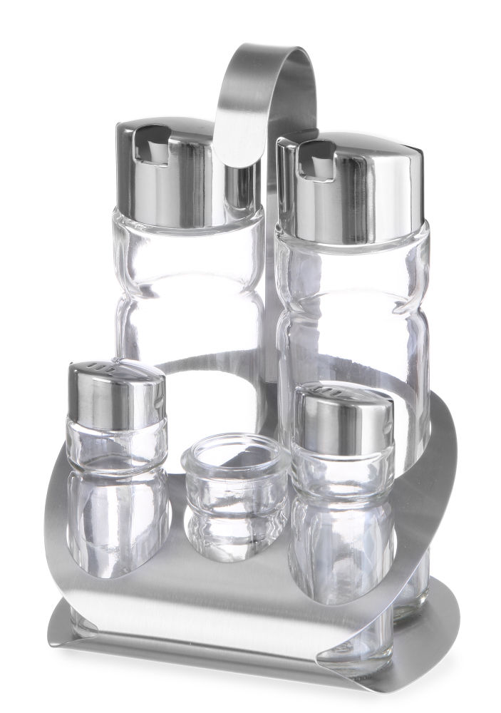 Hendi Menage 5-teilig (Pfeffer+Salz+Öl+Essig+Zahnstocher)