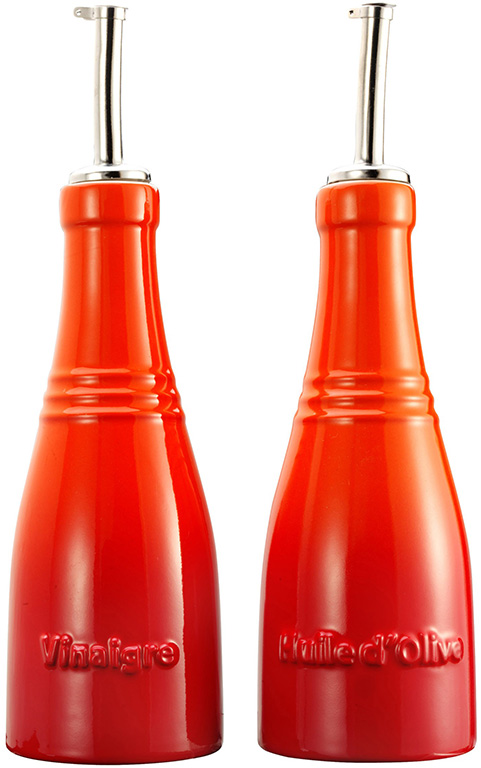 - Das Le Creuset Essig- und Öl-Set in ofenrot sorgt für eine ansprechende Präsentation auf dem Tisch und ersetzt unschöne Flaschen.