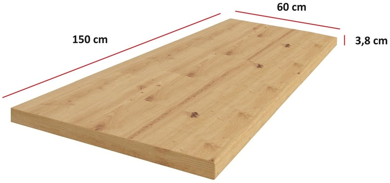 Die Küchen-Preisbombe Arbeitsplatte im Dekor Eiche Artisan ist die ideale Ergänzung für Ihre Einbauküche. Mit einer Breite von 150 cm, einer Tiefe von ca. 60 cm und einer Höhe von ca. 3,8 cm bietet sie ausreichend Platz für Ihre Küchenaktivitäten. Die Arbeitsplatte besteht aus einer robusten Spanplatte mit HPL-Beschichtung und verfügt über eine Doppelrund Postforming Vorderkante, die für eine ansprechende Optik sorgt. **Highlights** - Dekor: Eiche Artisan NB - Material: Spanplatte mit HPL Beschichtung - Vorderkante: Doppelrund Postforming - Seitliche Kanten: Im Dekor belegt - Stärke: ca. 38 mm **Produkteigenschaften** - Maße: Breite 150 cm / Tiefe ca. 60 cm / Höhe ca. 3,8 cm - Passend für die Küchenmodelle EKO White, ARTISAN und STILO