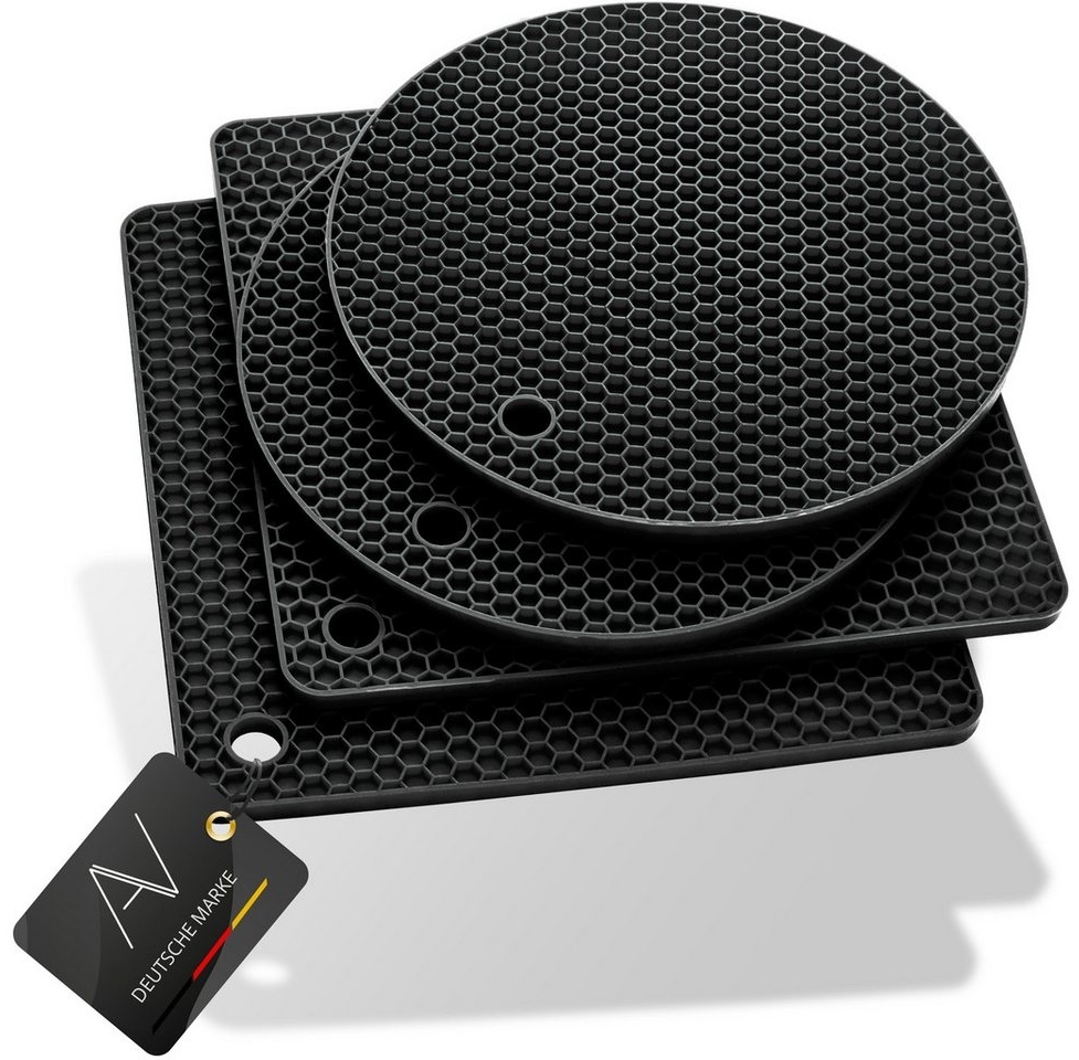 | Name | AVANA Topfuntersetzer Silikon Untersetzer Multifunktional Pfannenuntersetzer Topflappen, Zubehör für Töpfe, Pfannen, Auflaufformen, 4er Set, Hitzebeständig, Wabenmuster (2 Rund, 2 Viereckig) |
