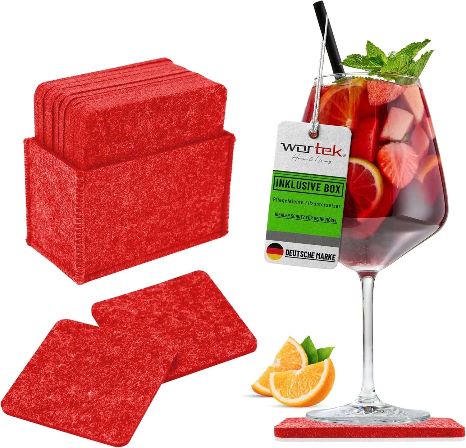 | Name | wortek Getränkeuntersetzer Filz-Untersetzer Eckig für Gläser 10er Set + Box, Zubehör für Tisch & Gläser, Set, 10-tlg, waschbare Getränke Glasuntersetzer Gläser, Tischuntersetzer Filz 10 cm |
