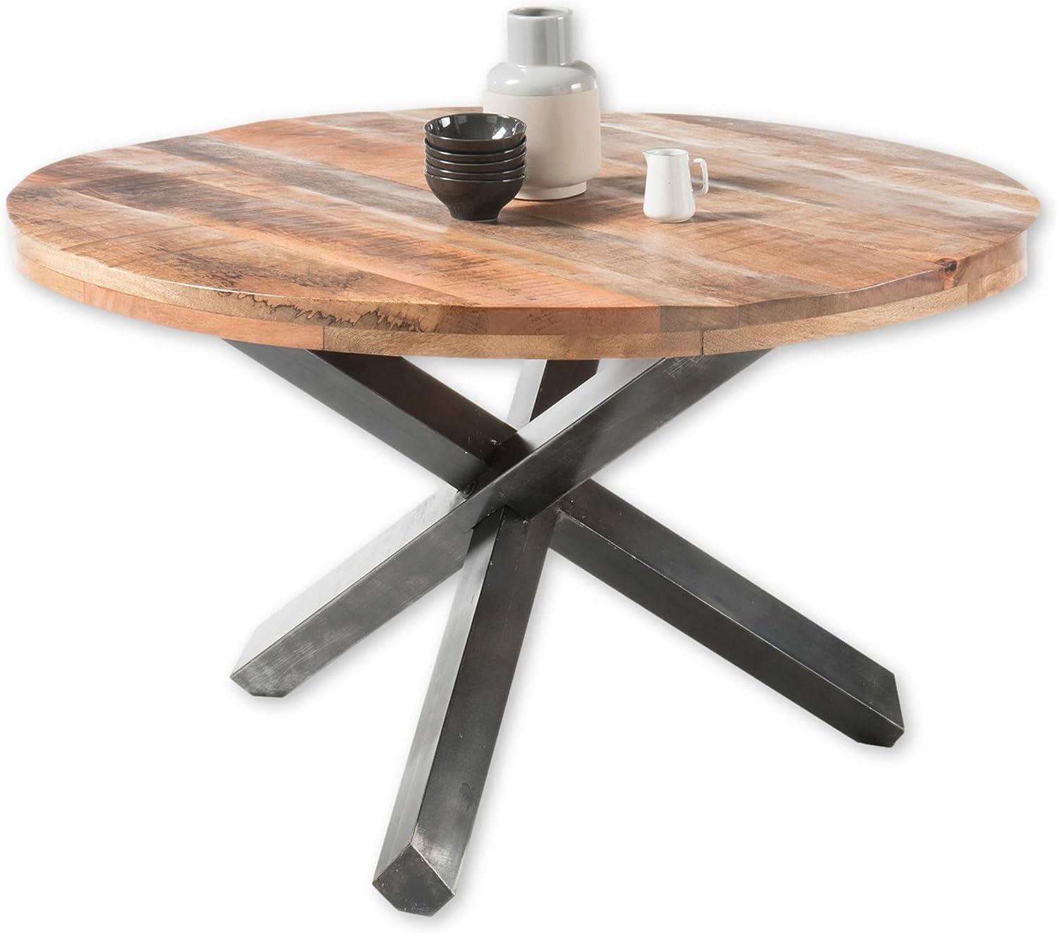 Esstisch Esszimmer Tisch Massivholz Echtholz Mango Metall Gestell rund 130cm