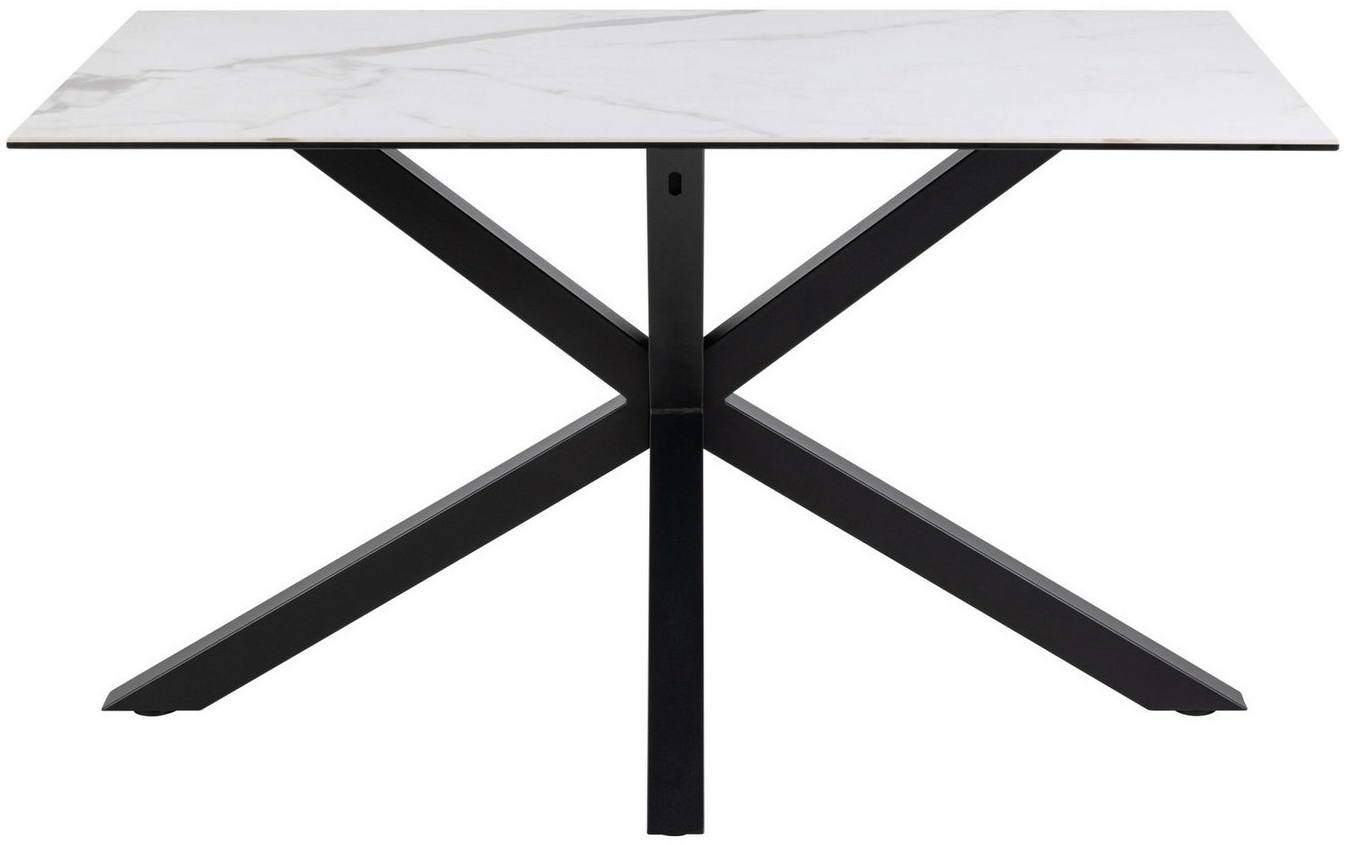 in EsstischeAC Design Furniture Heather Rechteckiger Esstisch für 4 PersonenTischplatte in Weißer Marmoroptik und Metallkreuzgestell, Küchentisch mit Keramikoberfläche, Kratzfest, B: 135 x H: 75,5 x T: 80 cm