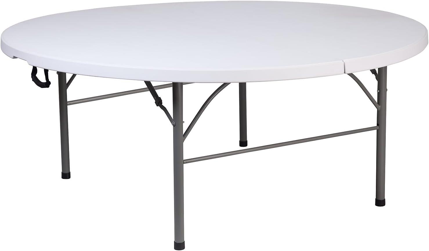 Der Flash Möbel Klapptisch ist die ideale Lösung für Ihre Veranstaltungen. Mit einer großzügigen Tischplatte aus 5,1 cm dickem, weißem Granit bietet er Platz für bis zu 10 Erwachsene und hat eine statische Tragfähigkeit von 440 lb. Die wasserdichte und schmutzabweisende Oberfläche sorgt für einfache Reinigung. Dank der klappbaren Funktion und des praktischen Tragegriffs ist der Tisch leicht zu transportieren und zu lagern. **Highlights** - Platz für bis zu 10 Erwachsene - Statische Tragfähigkeit von 440 lb - Wasserdichte und schmutzabweisende Tischplatte - Klappbar für einfache Lagerung und Transport - Praktischer Tragegriff **Produkteigenschaften** - Maße (BxLxH): 179,7 x 179,7 x 73,7 cm - Material: Granit (Tischplatte), Metall (Beine) - Farbe: Weiß (Tischplatte), Grau (Beine) - Tischbeine mit pulverbeschichteter Oberfläche - Verwendung handelsüblicher Tisch Bodenschutzmatte Kappen