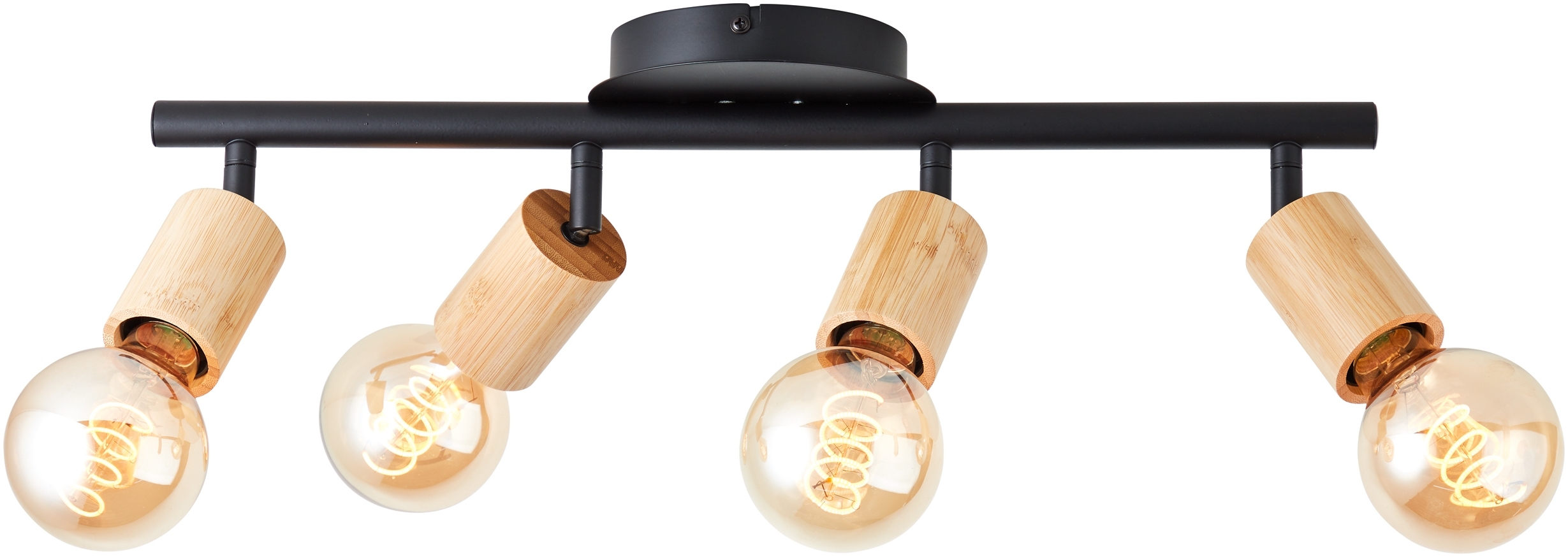Brillant Leuchten Tiffany Spotleuchte 4-flammig schwarz matt natur Köpfe sind schwenkbar Höhe: 12,5 cm Breite: 49 cm Tiefe: 14 cm Farbe: schwarz matt, natur Material: Metall, Bambus Technik: Leuchte ohne Lichtquelle Sockel: E27 Leistung: 4 x max. 28 W Spannung: 230 V Schutzklasse: I IP20