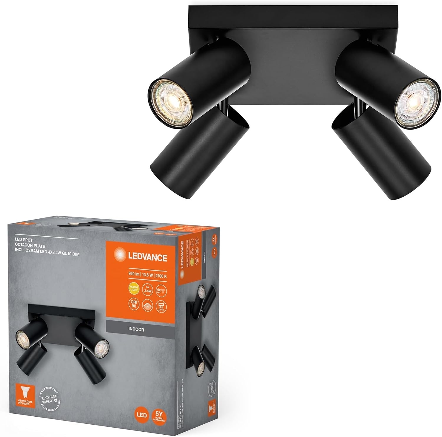 | Name | LEDVANCE LED-Spot Octagon GU10 schwarze Platte 4x3,4 W 927 DIM |