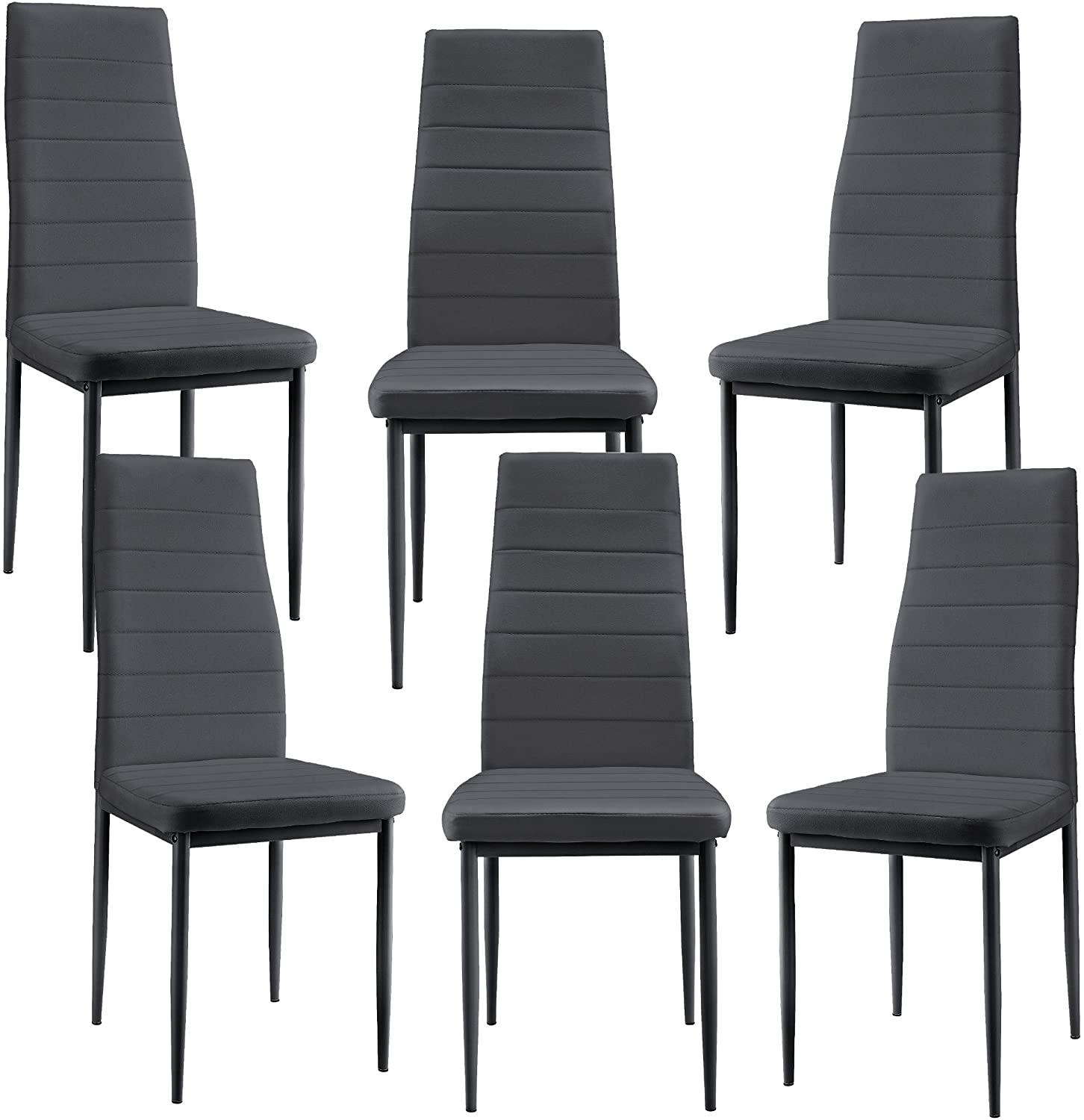 en.casa 6x EsszimmerstuhlPolsterstuhl, dunkelgrau, aus PU-Kunstleder