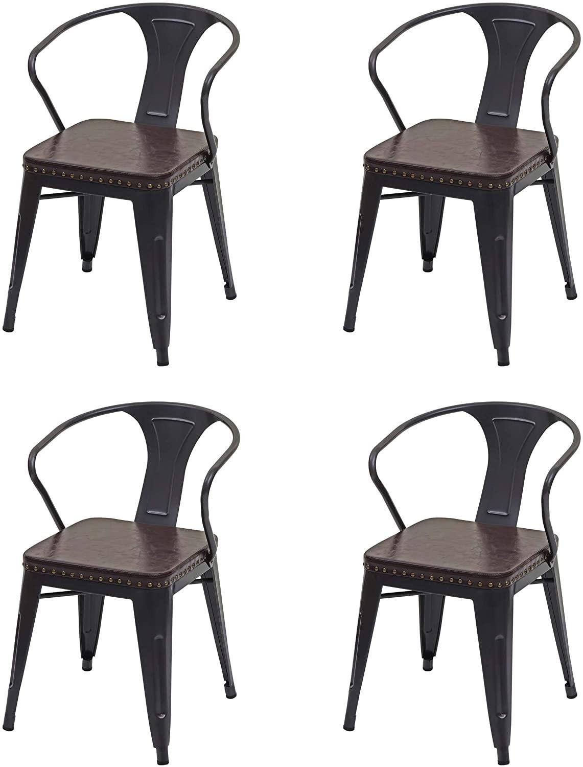 | Name | 4er-Set Esszimmerstuhl HWC-H10d, Stuhl Küchenstuhl, Chesterfield Metall Kunstleder Industrial Gastro ~ schwarz-braun |