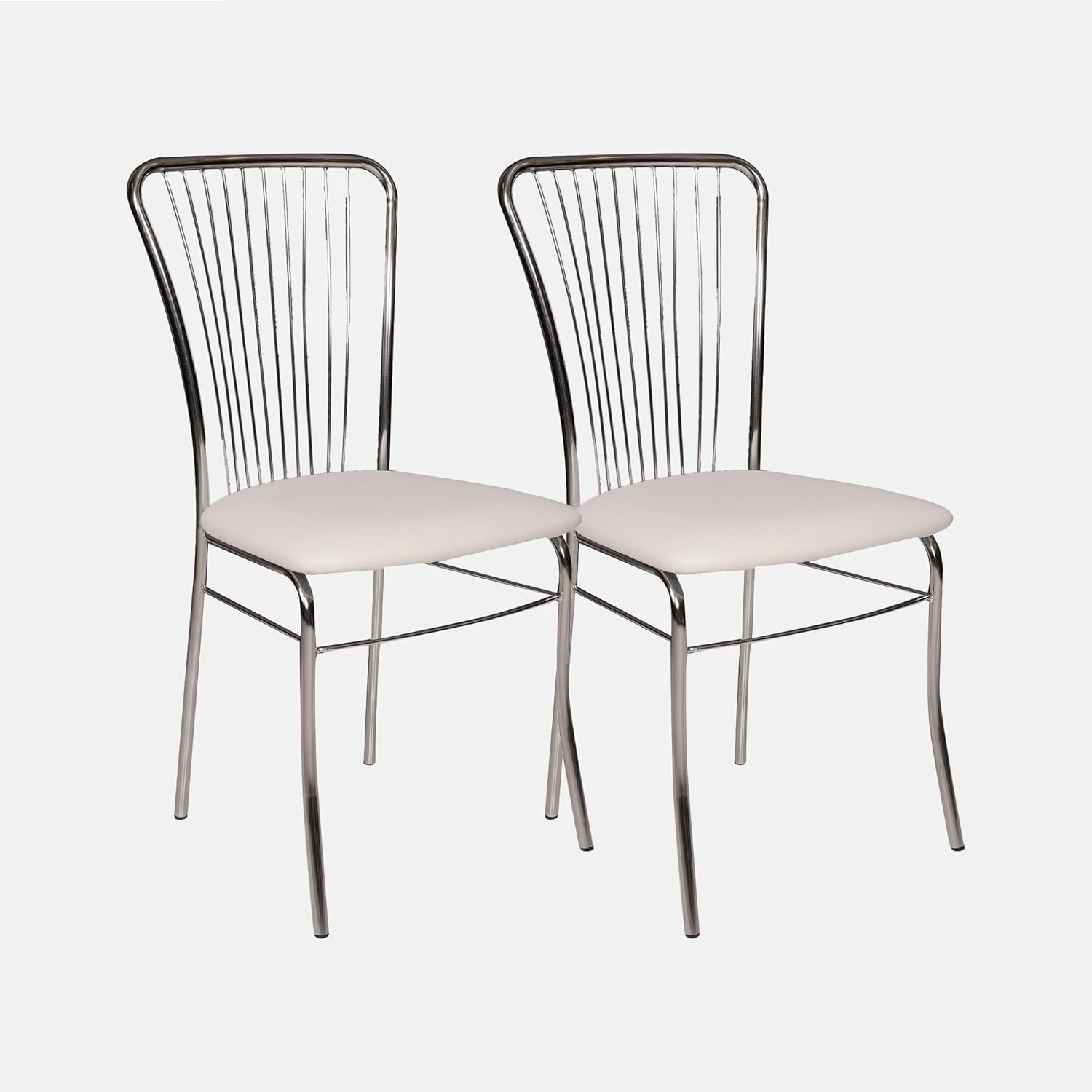 Präsentieren Sie Ihr Zuhause stilvoll mit dem Set aus 2 modernen Stühlen von Dmora. Diese Stühle verfügen über eine verchromte Metallstruktur und einen bequem gepolsterten Sitz aus Kunstleder in eleganter weißer Farbe. Ideal für Esszimmer, Küche oder Wohnzimmer, bieten sie sowohl Komfort als auch zeitloses Design. **Highlights** - Set mit 2 Stühlen für vielseitige Verwendung - Verchromte Metallstruktur für Stabilität - Bequem gepolsterter Sitz aus Kunstleder - Elegantes und zeitloses Design - Sorgfältige Verpackung für sicheren Versand **Produkteigenschaften** - Maße (LxBxH): 54 x 45 x 93 cm - Farbe: Weiß - Material: Kunstleder / Metall **Lieferumfang** - 2 Stühle - Keine weiteren Produkte enthalten