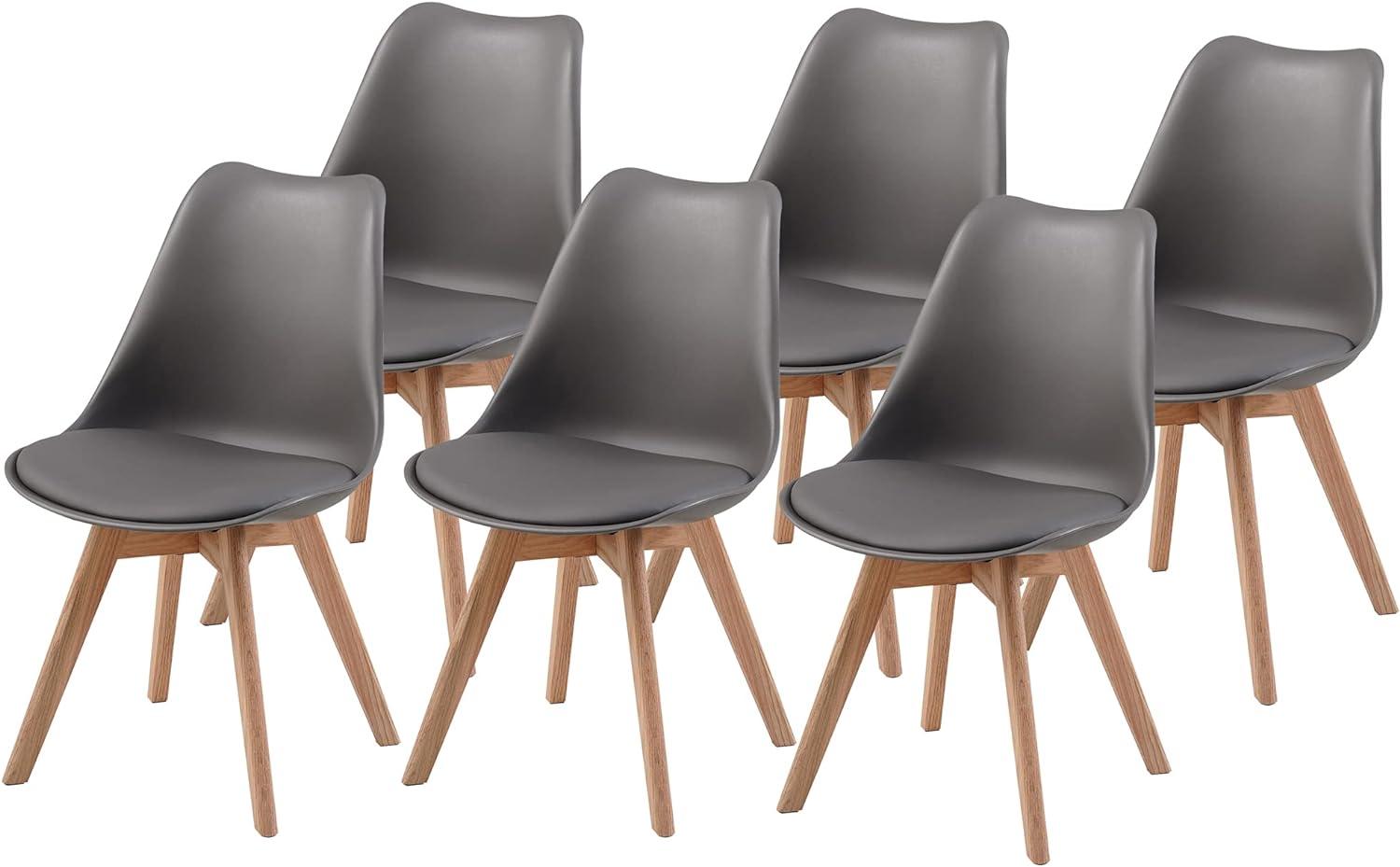 Albatros Esszimmerstühle AARHUSmit Beinen aus Massiv-Holz 6-er SET, grau / eiche