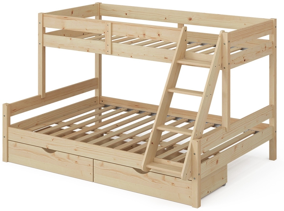 Etagenbett Everest Naturholz 140x200 / 90x200 cm mit Schubladen Vitalispa
