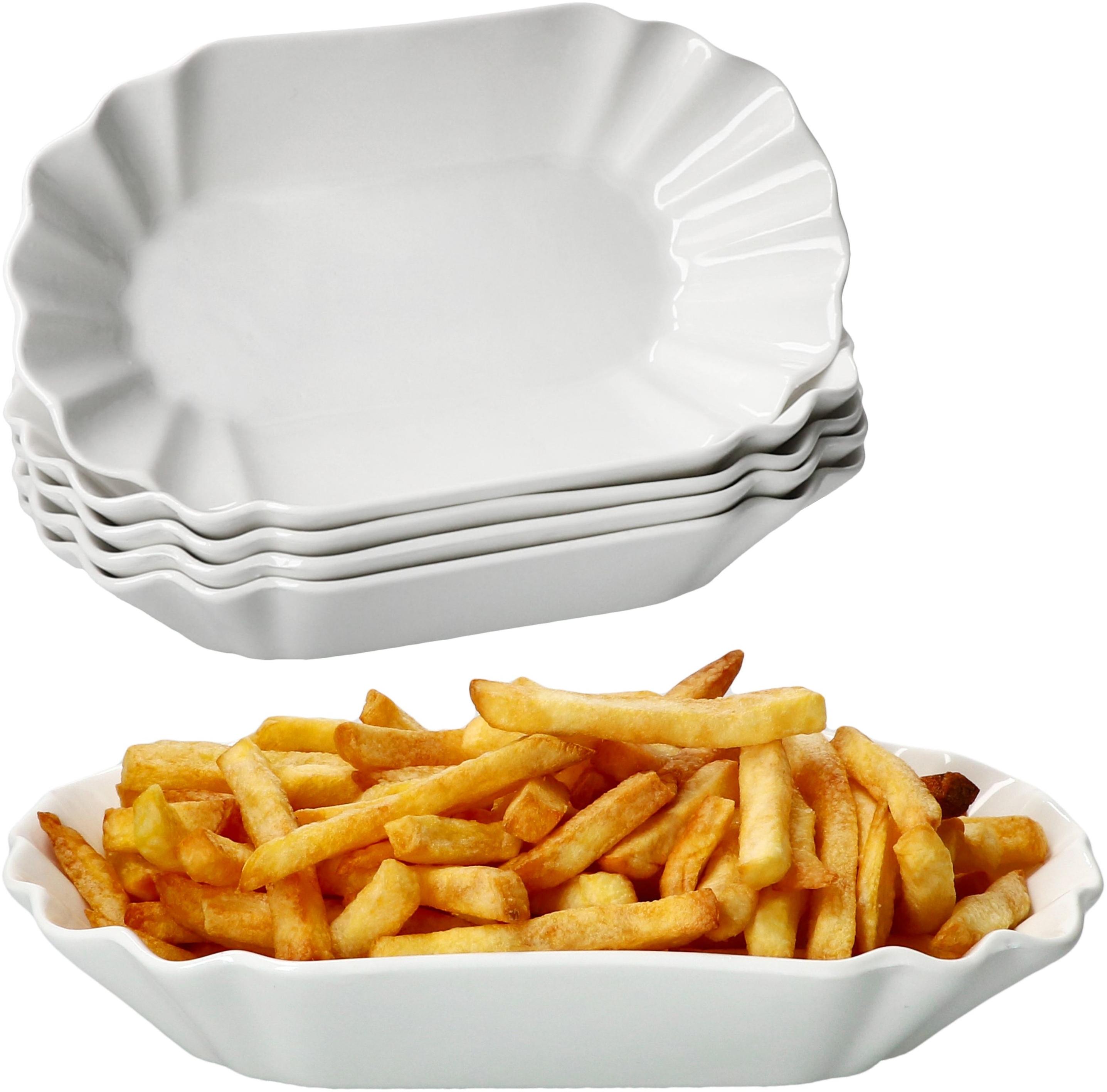 - Im Set sind sechs ovale Schalen enthalten, die ideal für das Servieren von Pommes, Snacks und Beilagen sind