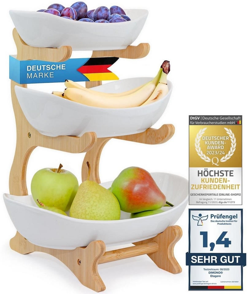 in EtagerenDimono Etagere Deluxe Servier-StänderKeramik, (3-Etagen Servierschalen, Obst- & Gemüseschale), Servierschalen für Desserts, Obst, Gemüse, Süßes uvm.