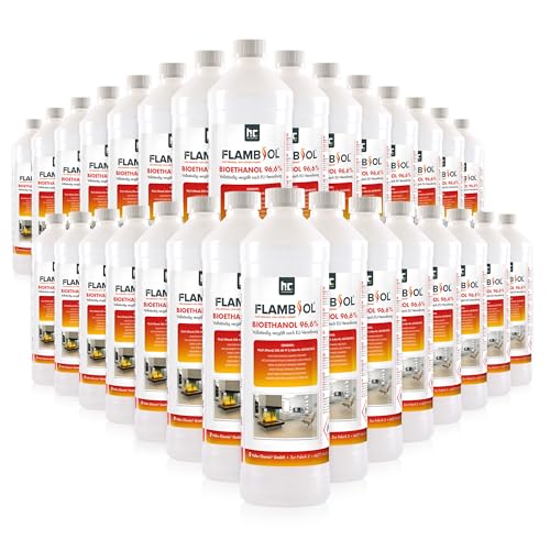 in EthanolkamineFLAMBIOL Bioethanol 96,6% Premium 30 x 1 L - Ethanol für TischkaminKamin & Gartendeko für Draußen - Rauch- und Rußfrei - Aus Mais & Zuckerrüben