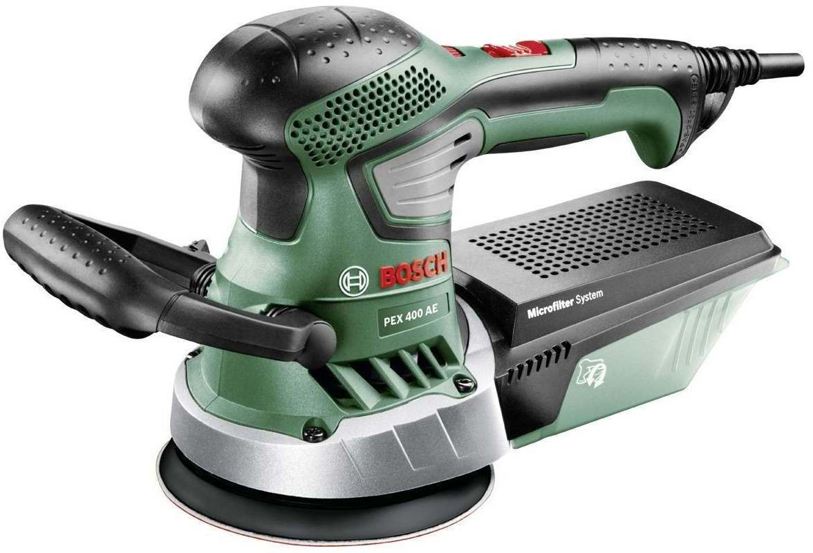 - Der Bosch Exzenterschleifer PEX 400 AE verfügt über einen leistungsstarken 370-W-Motor, der feinstes Schleifen ermöglicht.