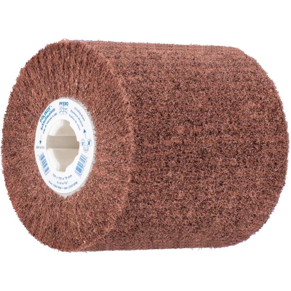 - Die PFERD Schleifvlieswalze POLINOX hat eine lamellenförmige, radial angeordnete Struktur.