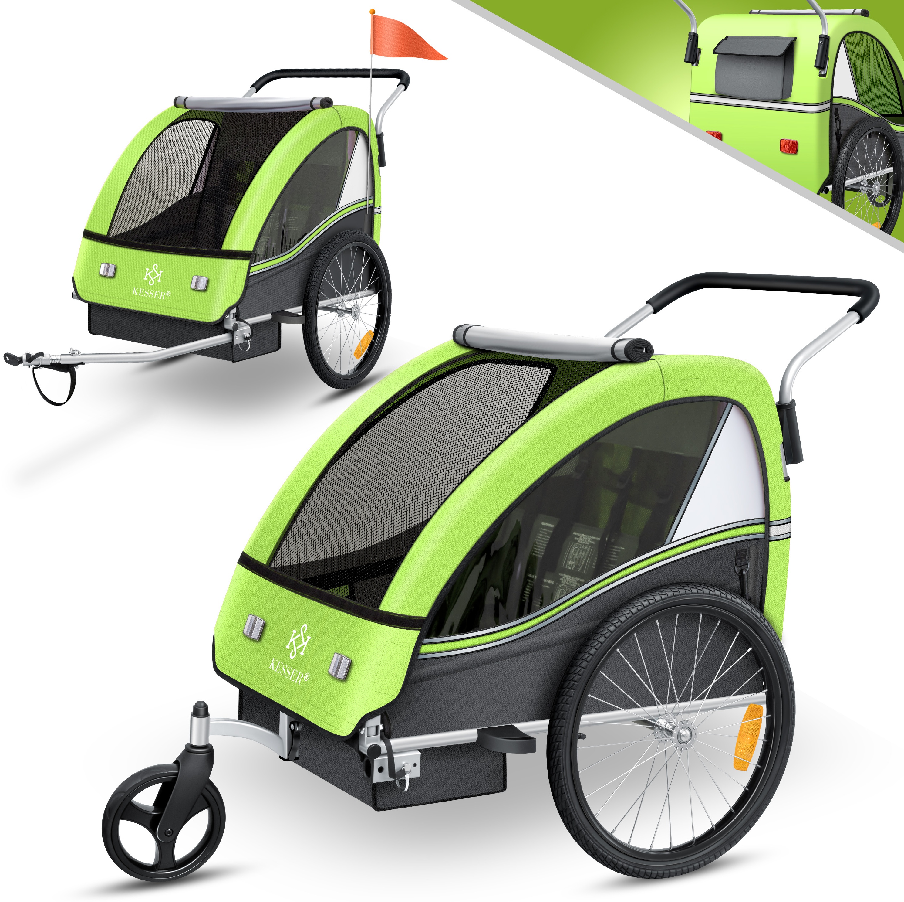 | Name | KESSER® 'Sport-RX' Kinderanhänger 2in1 in Hellgrün Joggerfunktion + 5-Punkt Sicherheitsgurt, Anhänger für 1 bis 2 Kinder, max. 40kg |