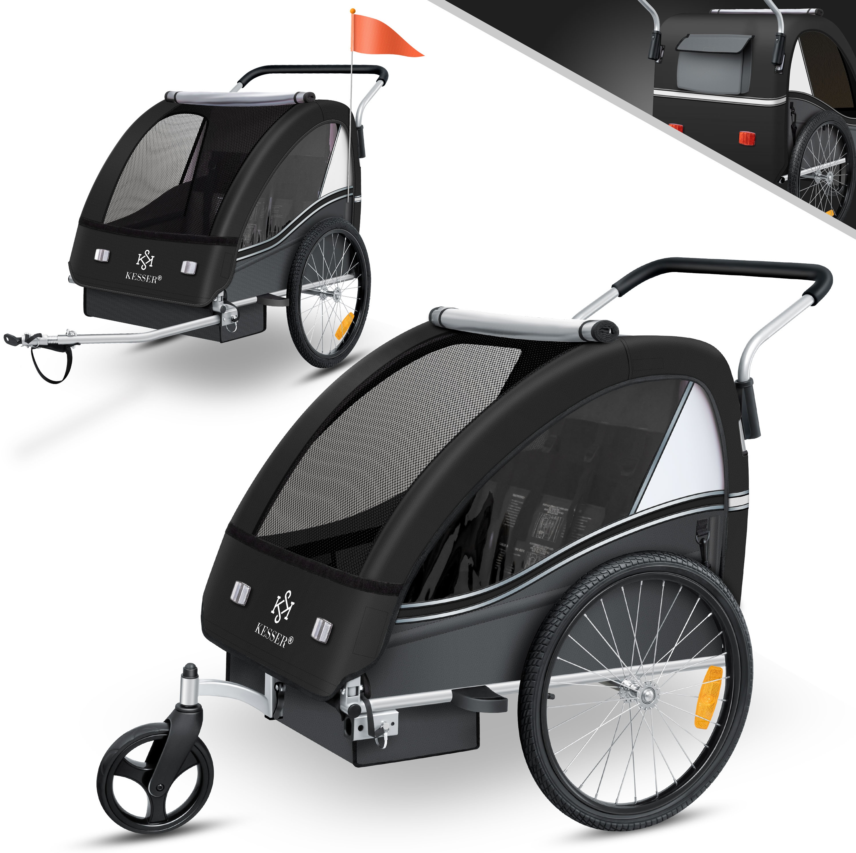 KESSER® Fahrradanhänger Sport-RX 2 in 1mit Joggerfunktion, 5-Punkt Sicherheitsgurt, 360°-Vorderrad, für 1 bis 2 Kinder, max. 40kg, Schwarz