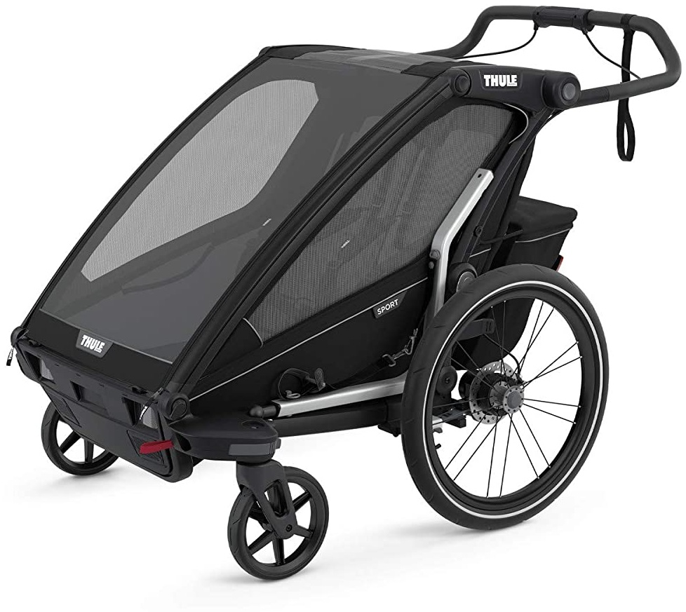 - Der Thule 'Chariot Sport 2' ist ein vielseitiger Anhänger, der sich leicht in einen Jogger oder Kinderwagen umwandeln lässt.
