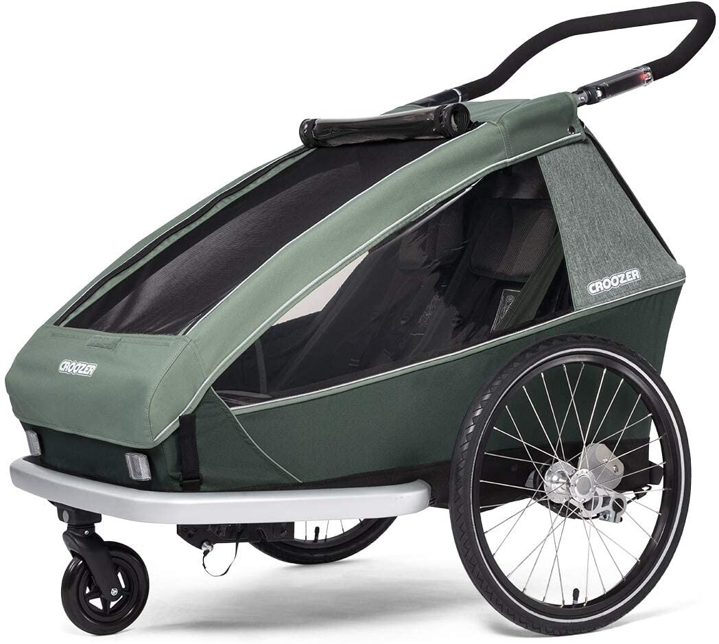 Croozer 'Kid Vaaya 2' Fahrradanhänger 2020Jungle Green, 2-Sitzer, inkl. Fahrrad-Set, Buggyrad, Wetterverdeck, Kopfpolster, integriertes Sensor-Licht