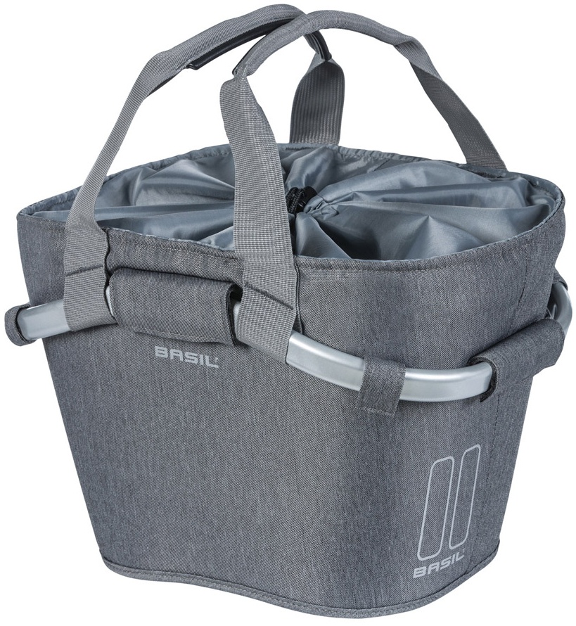 - Der Basil 2Day Carry All Front Basket KF hat ein elegantes, graumeliertes Design, das stilvoll aussieht.