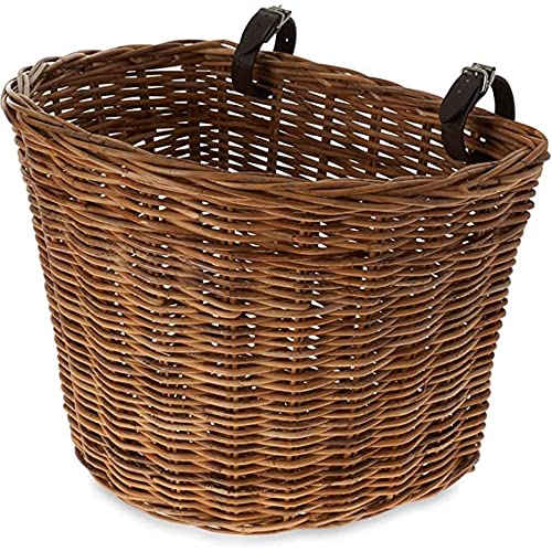 - Der Basil Fahrradkorb Darcy L in der Farbe Varnished Natural hat eine halbrunde Form und besteht aus Rattan