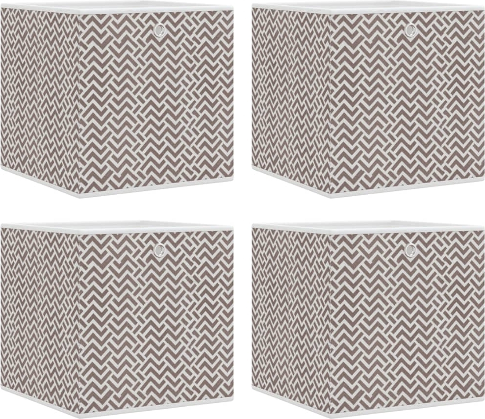 Diese faltbaren Aufbewahrungsboxen sind die idealen Ordnungshelfer für Ihr Zuhause, WGs, Bastelräume oder Kinderzimmer. Hergestellt aus strapazierfähigem Vliesstoff, bieten sie eine atmungsaktive und langlebige Lösung zur Aufbewahrung von Kleidung, Spielzeug und Büchern. Das platzsparende Design ermöglicht ein einfaches Zusammenklappen, während die praktischen runden Ösen einen mühelosen Zugriff auf Ihre verstauten Dinge gewährleisten. **Highlights** - Strapazierfähiger Vliesstoff für lange Nutzungsdauer - Platzsparendes, faltbares Design - Praktische runde Ösen für einfachen Zugriff - Vielseitige Aufbewahrungslösung für verschiedene Gegenstände - Pflegeleichtes Material für den täglichen Gebrauch **Produkteigenschaften** - Farbe: Braun mit Zickzack-Muster - Material: Vlies - Abmessungen: 32 x 32 x 32 cm (L x B x H) - Mit runden Ösen - Zusammenklappbar **Lieferumfang** - 4 x Aufbewahrungsbox