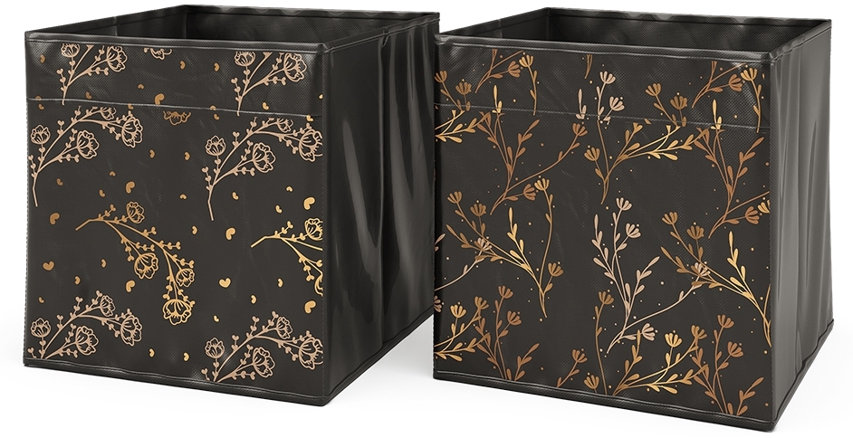 Faltbox Schwarz/Gold (Floral) 30 x 30 cm 2er Set Option2 Vicco