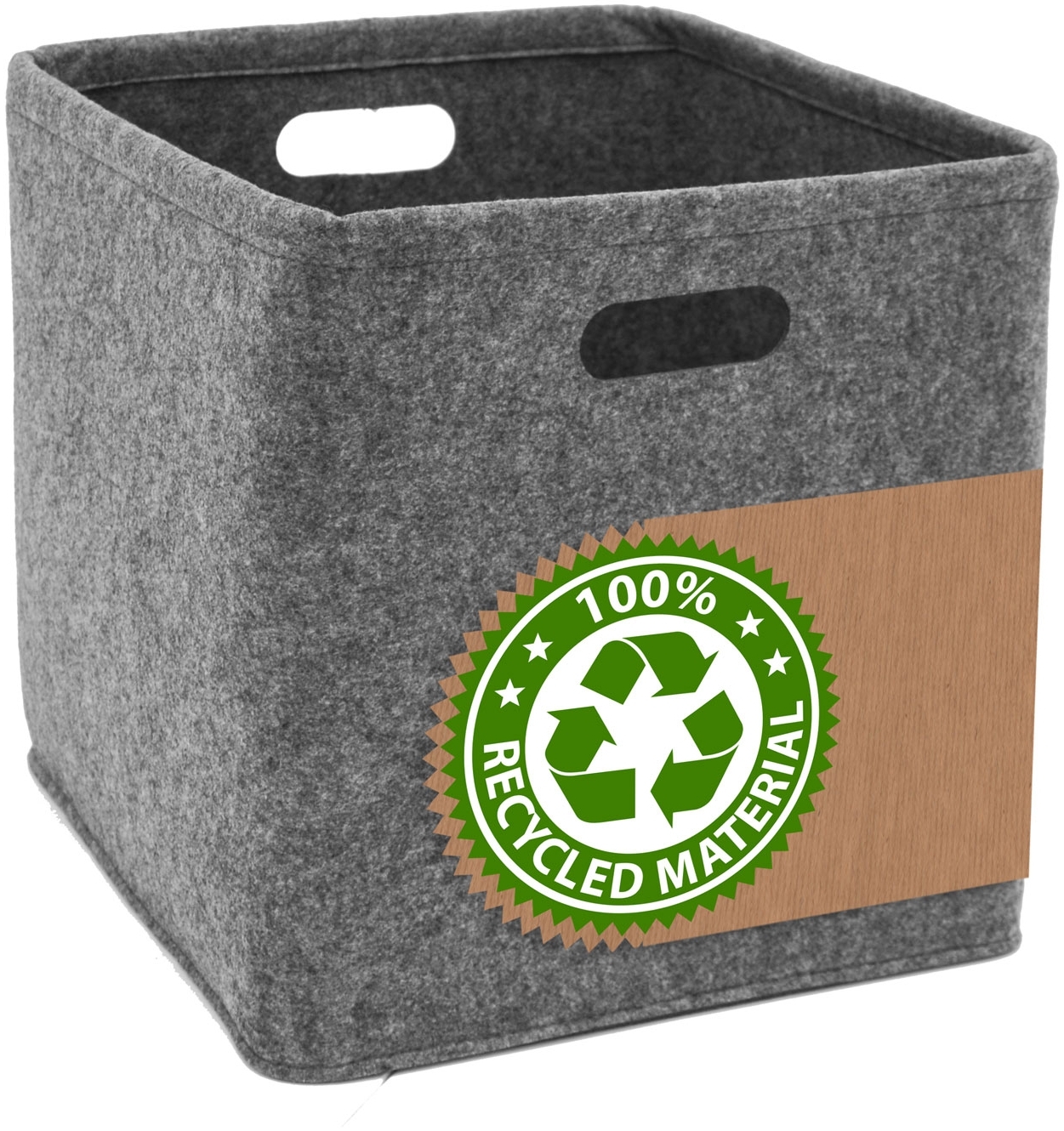 Die Filz Aufbewahrungsbox mit den Maßen 33 x 33 x 33 cm bietet Ihnen eine praktische und stilvolle Lösung zur Aufbewahrung. Sie ist kompatibel mit IKEA Kallax Regalen und eignet sich hervorragend als Spielzeugkiste, Aufbewahrungsbox im Wohnzimmer oder Regaleinsatz für Kleidung. Mit einem Volumen von 36 Litern sorgt sie für Ordnung in Ihrem Zuhause. Der formstabile Filzkorb aus 3 mm starkem Filz ist robust, pflegeleicht und aus 100% recyceltem Material gefertigt. **Highlights** - 100% Recycling: Hergestellt aus recyceltem Material - Formstabile Konstruktion: 3 mm dicker Filz mit Drahtbügel im Rand - Integrierte Griffe: Erleichtert das Herausnehmen aus Regalen - Kleckerfest und pflegeleicht: Schmutzabweisend und leicht zu reinigen - Schadstoffgeprüfte Qualität: Entspricht den gesetzlichen Vorgaben **Produkteigenschaften** - Maße (HxBxT): 33 x 33 x 33 cm - Volumen: ca. 36 Liter - Material: 100% Polyester - Farbe: Anthrazit Grau - Faltbar: Nur ca. 5 cm hoch im gefalteten Zustand **Lieferumfang** - 1 x Faltbare Filz Aufbewahrungsbox - Ausgeschlossen: Weitere Aufbewahrungslösungen oder Zubehör