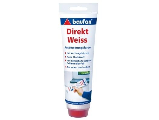 - Die Baufan Direkt Ausbesserungsfarbe ist in der Farbe Weiß erhältlich