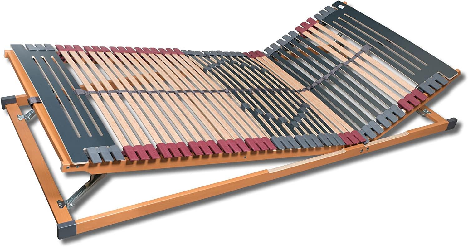 7 Zonen Lattenrost Rhodos® KF | Kopf- und Fußteil verstellbar | 44 Leisten | Kautschukkappen | Querholme BUCHE massiv | Mittelgurt | fertig montiert | TÜV/GS Geprüft ID 1111212908 | 70x200 cm