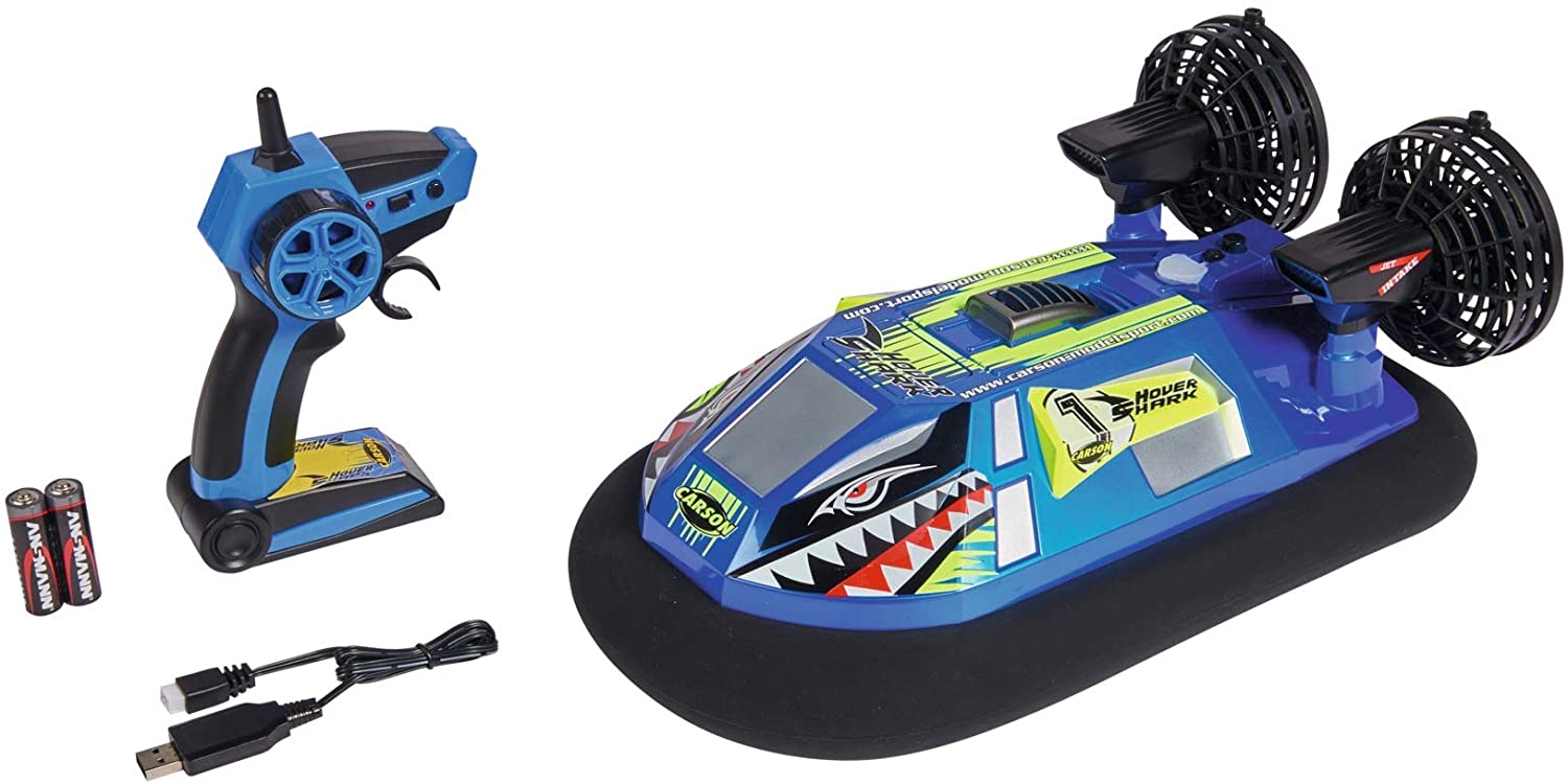 | Name | Carson 500108030 Hovershark 2.4G 100% RTR, geeignet für Glattböden, Luftkissenboot, Luftkissenfahrzeug, Ferngesteuertes Fahrzeug, inkl. Batterien und Fernsteuerung |