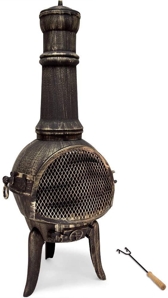 Deuba Terrassenofen aus Gusseisen Schürhaken 28kg Funkenfluggitter Gartenofen Gartenkamin Feuerstelle