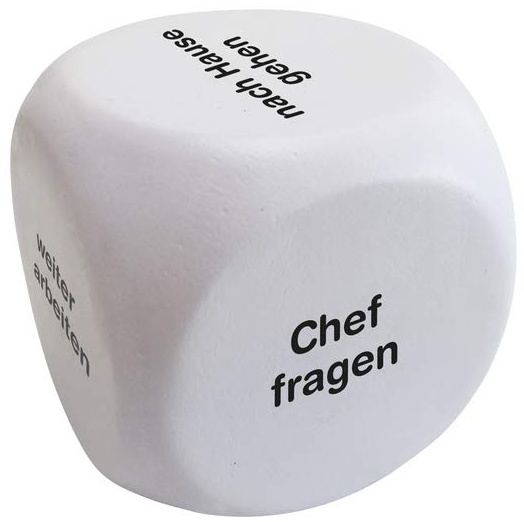 | Name | Anti-Stress Würfel, Entscheidungswürfel, Decisionmaker zum Knautschen als Anti Stress Mittel und zum Entspannen, 6 cm |