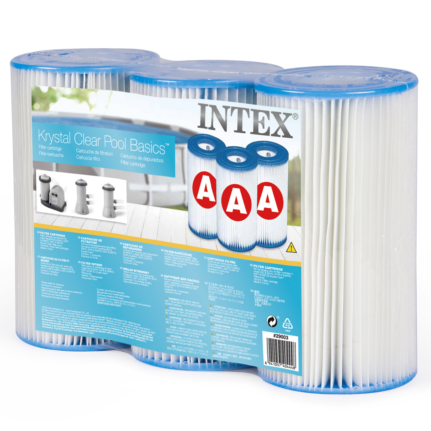 - Packung mit 3 Filter für Reinigungskartusche Intex Typ A